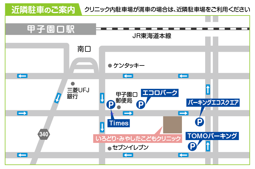 お車でお越しの場合クリニック駐車場・近隣の駐車場をご利用ください